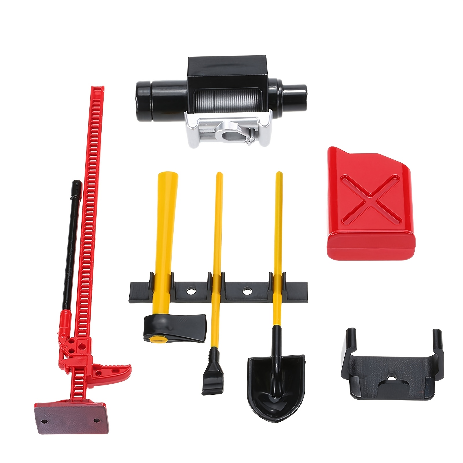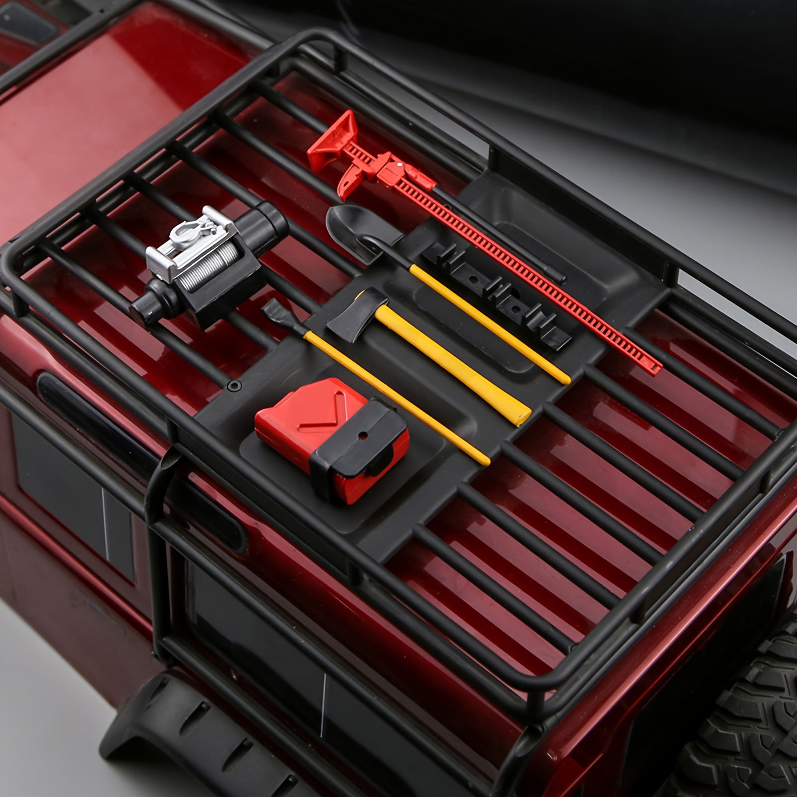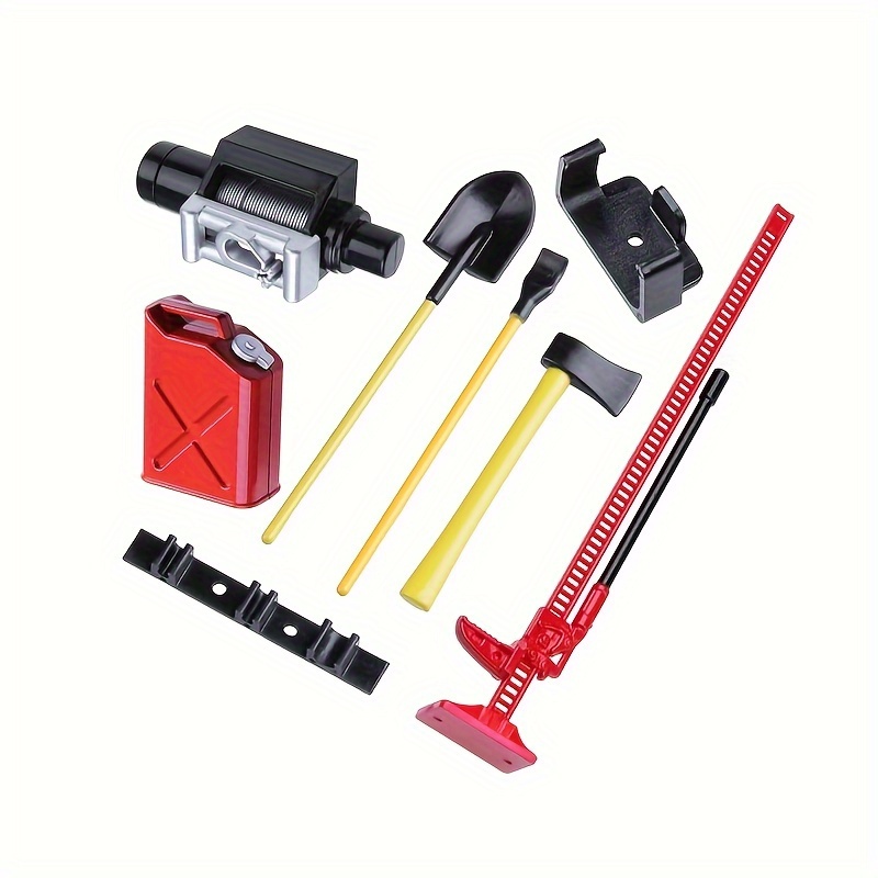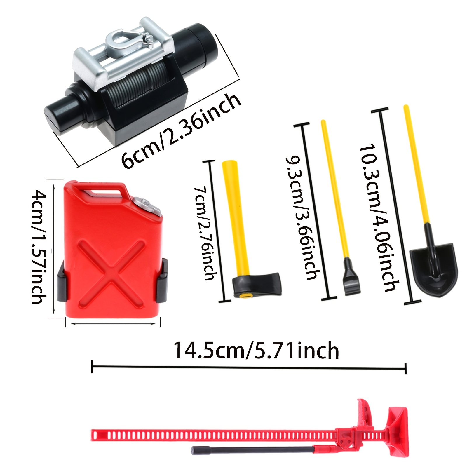 Add realistic detail to your 1/10 RC crawler with this simulation accessory kit. Includes scale tools like fuel cans, shovels, and toolboxes—perfect for roof racks and trail displays. Compatible with Axial, Traxxas, Redcat, and more.